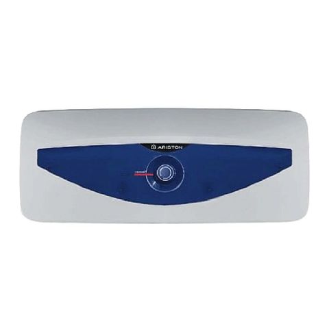 Bình nước nóng Ariston 20L BLU 20 SLIM với thiết kế bình ngang, kiểu dáng đơn giản, nhỏ gọn, kết hợp với hai màu trắng, xanh tinh tế, sang trọng, mang đậm phong cách Ý hài hòa với mọi không gian phòng tắm gia đình.