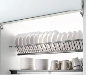 Nên lắp đặt giá bát đĩa ngay trên bồn rửa vừa giúp úp bát đĩa nhanh chóng khi rửa xong vừa giúp nước sẽ nhỏ trực tiếp xuống bồn rửa mà đôi khi không cần phải dùng khay hứng.